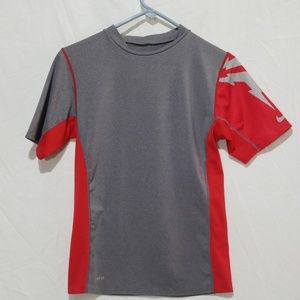 Grey and red Nike fit boys large athletic shirt excellent condition. 16 from shoulder to shoulder 18 in from armpit to armpit.