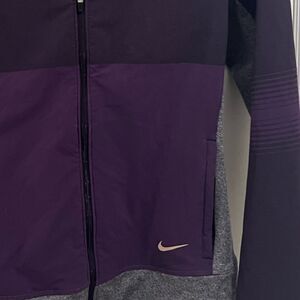 In great condition, keeps you warm while running, lined warmth. great for winter, fitted. Length is24 inches, sleeves are 25 inches with thumb holes in sleeves, and 16 inches armpit to armpit lying flat zipped up. 2 front zipper pockets