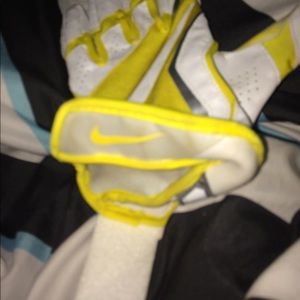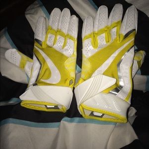 these are nike pro football gloves in a yellow colorway only used a few times. no odor