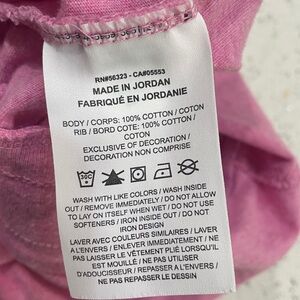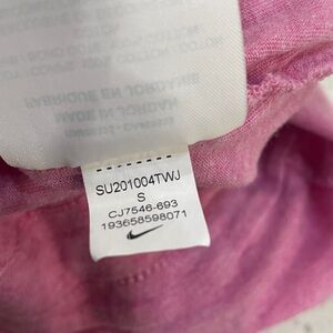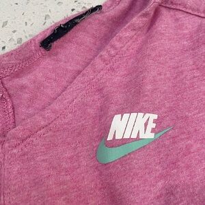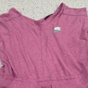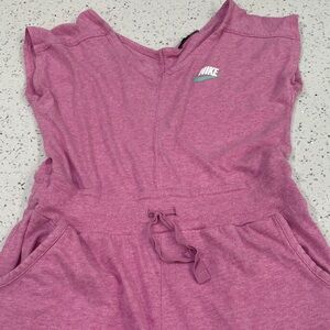 Comfortable pink jumpsuit with V-neck. Features Nike logo and drawstring waist. Size small