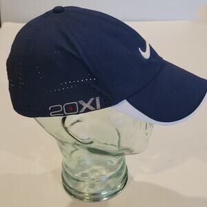 Nike golf Hat Cap Mens Dark Blue White Adjustable Strap 20XI VR Golf One size fits all. Unisex. Pre-owned, good shape.