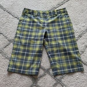Nike golf Tour Performance Dri Fit Gray Yellow White Plaid Shorts