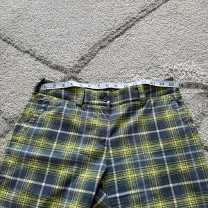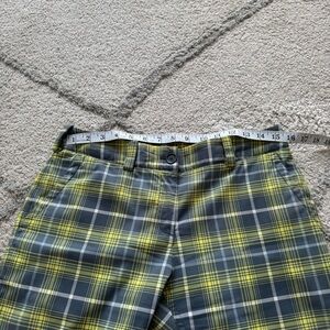 Nike golf Tour Performance Dri Fit Gray Yellow White Plaid Shorts long Bermuda 6