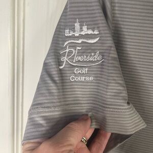 Nike golf polo dry fit in grey with Riverside golf course on sleeve embr…