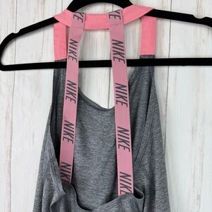Nike gray and pink open back tank in size XS. Gently preloved in great condition. Super cute strappy open back. Great for hiking and working out.