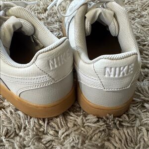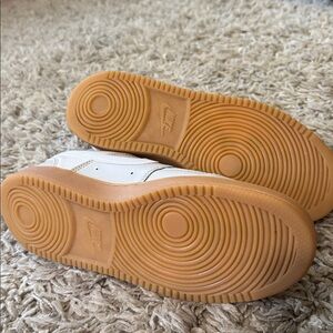 Nike sneakers in white and gray. Features a brown sole. Ideal for everyday style. Like new only worn a couple of times