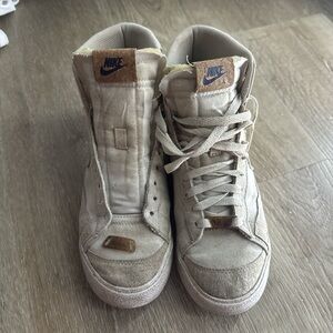very worn! they look incredible when nice and cleaned up. size us 8 womens. right shoe needs to be relaced. originally purchased in 2021 for $250.
