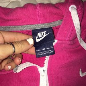 Nike jacket has only been worn twice perfect condition and almost looks new other than a tiny hole on the back of the jacket close to the bottom.