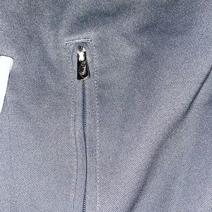 Nice Nike jacket. Women’s XS. Perfect condition. It is on the heavier/ thicker side. Gray, with a pink stripe down arms and another thin blue line as well.