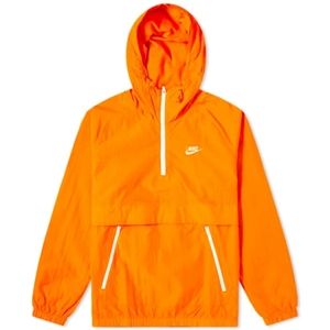 Retro sportswear always looks better in vibrant, in-your-face color & this quarter zip anorak from Nike proves it. Magma orange from hood to hem