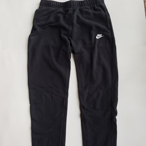 Black.nike joggers. No cuff at ankle. More of a straight leg with just a very slight taper. Snap closure back pocket. 2 front pockets. Inside drawstring waist. Great condition.
