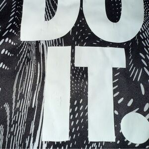Dynamic black and white Nike tee with bold 'Just Do It' design. Paired with sleek black shorts.