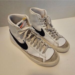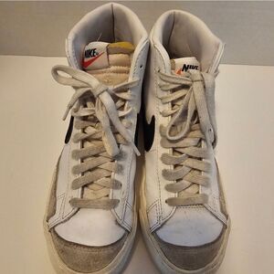 Nike size 6 ladies hi-top leather sneakers white with black swish. excellent condition
