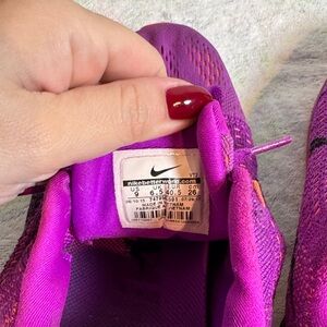 Bold purple Nike shoes with striking black accents. Perfect for running and everyday wear.