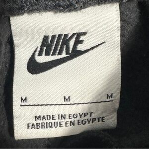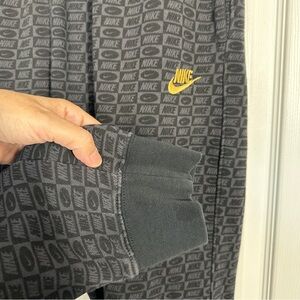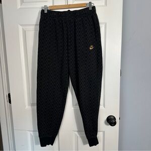 Nike men's Club Joggers in size medium. Checked logo design in black/dark gray, gold swoosh. Elastic waist with drawstring, rib knit cuffs. 80% cotton/20% polyester.