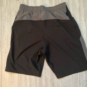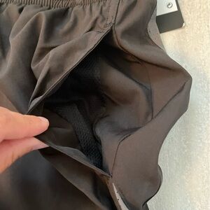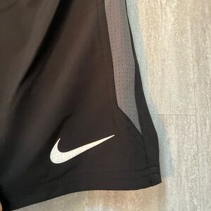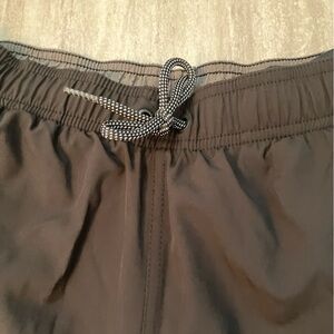 Brand new with tags Nike brand swim shorts in solid black with grey accents on sides. Mesh lining inside. Features elasticize waist with tie front and two side pockets.