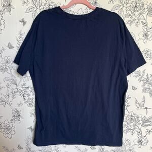 navy blue, graphic tee, oversized fit, athletic style, crew neck, casual wear, soft cotton, sportswear, logo print, relaxed fit