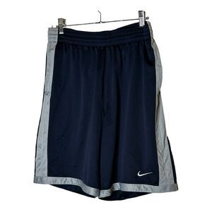 EUC smoke free dog friendly Nike men’s size large navy blue and silver Dri-Fit Battlegrounds mesh basketball shorts with drawstrings sports sportswear activewear bin x