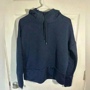 Nike navy blue ribbed hoodie sweatshirt dri-fit. Size Small, drawstring.