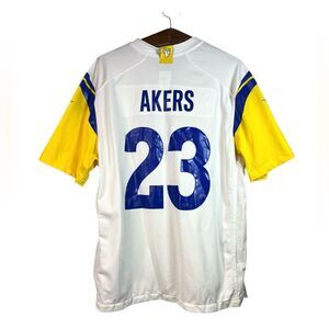 Nike on Field Los Angeles Rams Cam Akers 23 NFL Jersey White Blue Yellow Size XL Mens