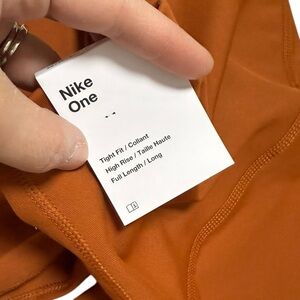 Nike one tight fit high rise training leggings new with tags burnt orange XS