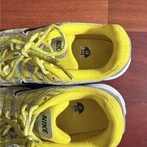 Dynamic Nike shoes with a sleek silver and bright yellow design. Ideal for active lifestyles.