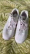 as they say on the video, I’ve walked around the house a couple times in these. There’s a little smudgy dirt on the inside. Nothing that you would know on the outside really but they’re not new with tags. I’ve worn them a couple of times inside they’re just too big. I put insoles in them, but they’re still too big. In excellent condition.