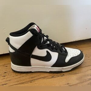 Step up your style with these Nike high-top sneakers. Featuring a sleek black and white design, these shoes offer both comfort and fashion. Perfect for any casual outing. Condition as pictured very gently used.
