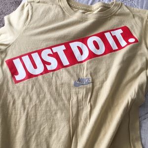 New nike tshirt! A very soft yellow with the Just Do It across in a red background. XS fits amazing!