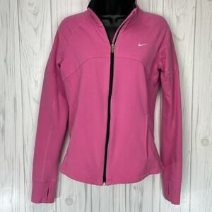 Nike pink zip-up sweatshirt size medium. A bit faded, otherwise Excellent Used Condition. Please see photos for measurements and tags.