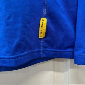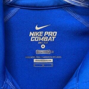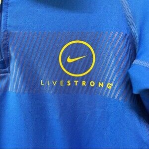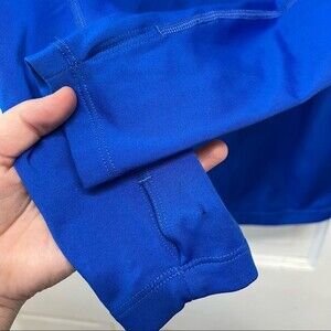 Nike pro combat dri fit live strong compression blue quarter zip pullover with thumb holes and yellow logo womens medium small hole by thumbhole as shown