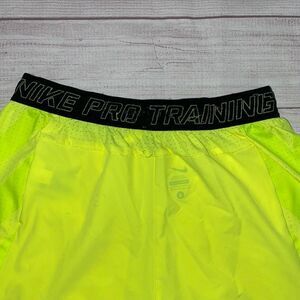 Nike pro training pull on shorts w/front pockets neon yellow & black sz S men Some markings on shorts but overall in very nice condition! Inseam approx 11”