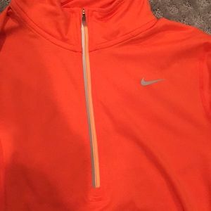 Nike running dri-fit 3/4 zip pullover. Has thumb holes and small metallic dots on end of sleeves. Very comfy and stretchy material. No holes, pulls, or stains. Only worn a handful of times. In excellent condition!