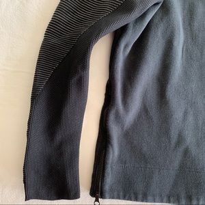 So cute! Unique arm details unlike any other Nike shirt I’ve seen. It’s kind of ridged with white in the crevices. Cute zippers on both sides near hip.