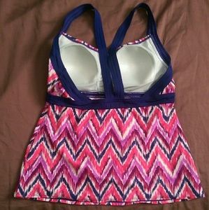 Like new Nike workout/swim tank, size 8. Fuchsia, lavender, maroon, white, navy. Soft cup bra, racerback straps. From Nike's "Better World" collection, made of sustainable and/or recycled materials.