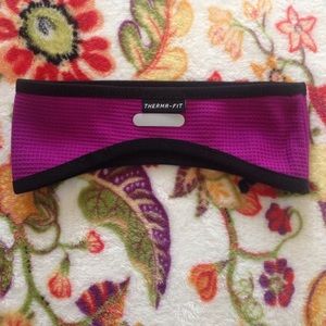 Woven web knit waffle running headband in purple berry. Reverses in black for easy matching options and bold bright days. Swoosh on both sides in Steele grey. Therma for design and technology.
