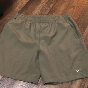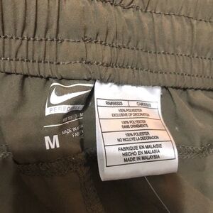Nike running shorts color is dark tan/taupe. Size medium new with tags. Does look like the performance on leg is scratched off a bit.