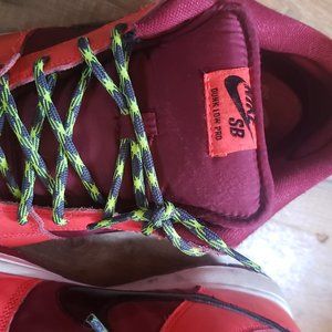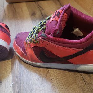 Gently used and in good condtion..comes with paracord laces and a nike box..smoke free pet free home..retail is 400 on these dunks..please no low balls...look at all pics close..no returns accepted...ship same day.. crimson laser nike sb dunk low crimson laser mens 11