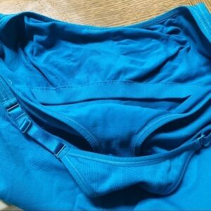 Nike Seamless tank Blue Nice thick stretchy materia bra lined Racer back Large EUC ACTIVE WEAR