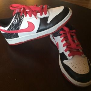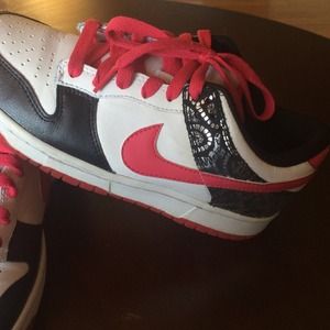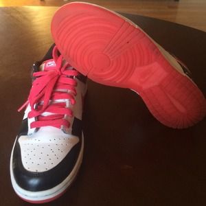 These are black and white Nikes with silver and pink details. These were only worn a handful of times at most.