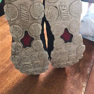 These have been work a few time. My son out grew them with in a month. Good condition as you can see from the pictures. Men’s Nike reax size 10.5