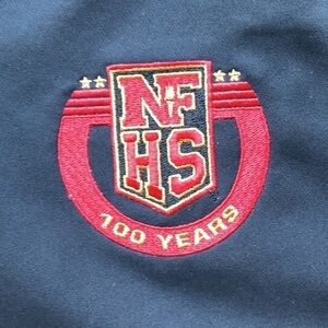 Like new condition NFHS logo Single button neck Pockets meet in the middle for one big pocket Drawstring on bottom to cinch