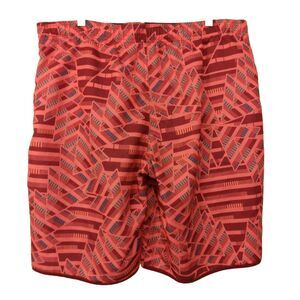 Nike shorts mens L Large pink red swim trunks lined polyester geometric