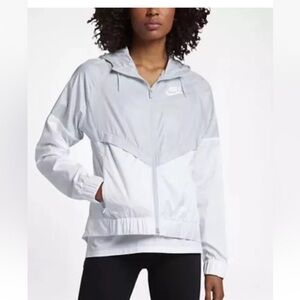 Nike NWOT silver and white Hooded Essential Windrunner Jacket size medium