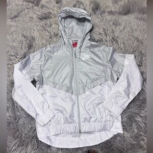 Nike silver and white light weight Hooded Essential Windrunner Jacket size M