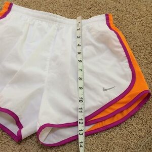 Nike Dri-Fit white combo athletic shorts, elaticized waist with drawstring, gently used.
