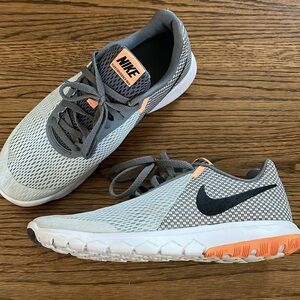 Women's size 8. Nike sneakers. Light and dark gray with accent of orange.