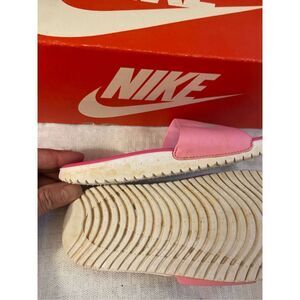 Nike slides size 13 big girls pink white. some discoloration around the edges. otherwise good used condiiton.