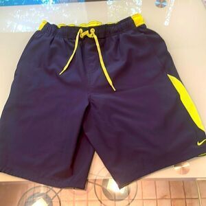 Nike swim shorts navy green medium drawstring, two pockets and one hidden pocket mash net inside great condition
