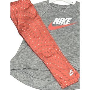 Nike swoosh 2pc set gray pink salt 2T NWT leggings T shirt